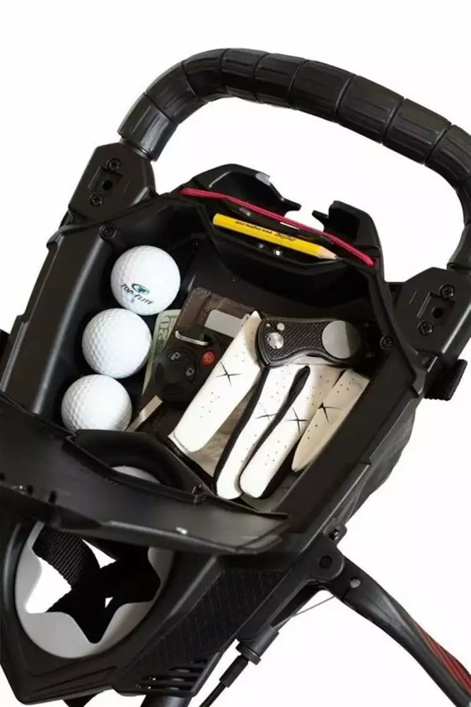 The nitrogen-powered auto open creates a simple two-step open making opening the cart effortless as the front wheel automatically pops out into place.
