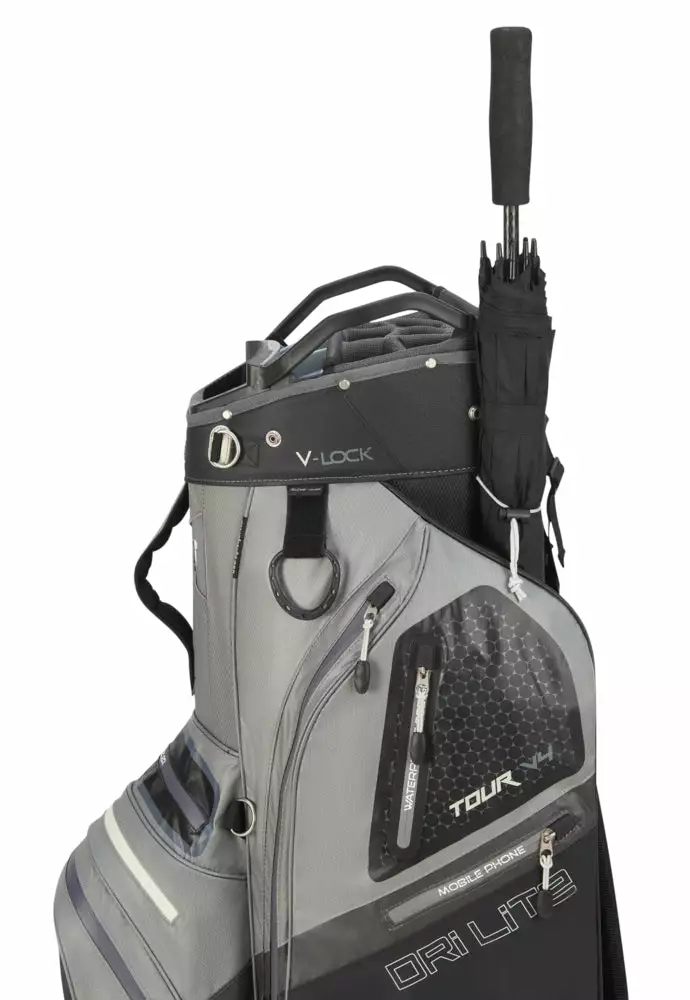 The Dri Lite V-4 bag offers the perfect overview of the clubs. Whereas with conventional tops large clubs hide smaller clubs, the V-Lock system works as follows: