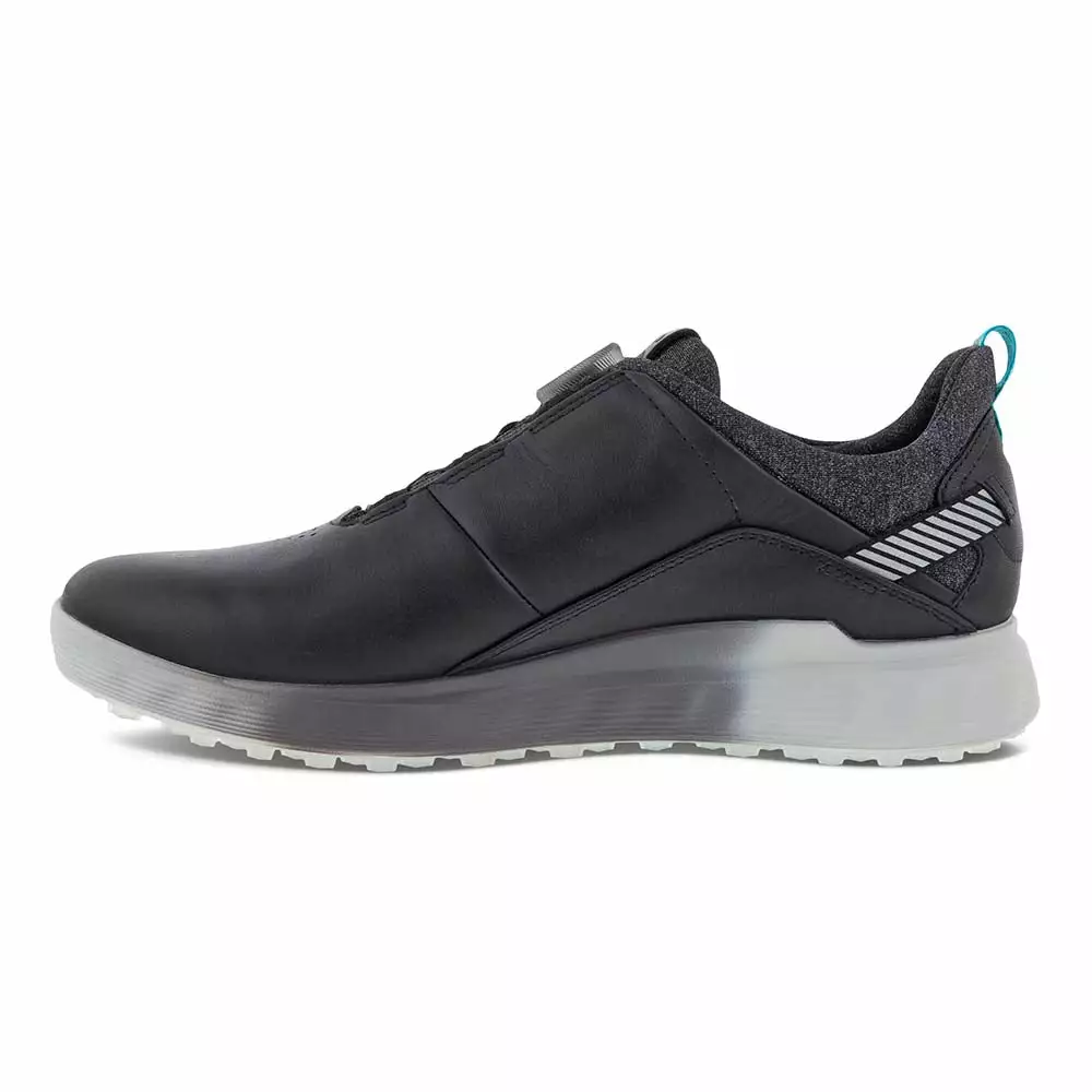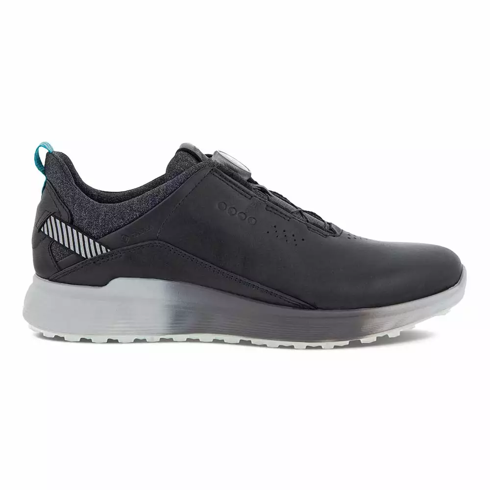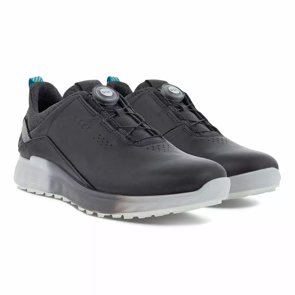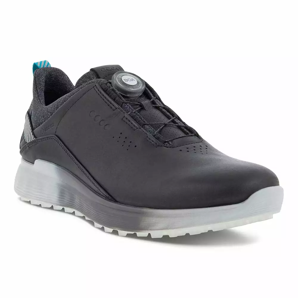 Ecco Golf S-Three Boa GoreTex mens golf shoes in blue is blending on-course performance with off-course style, the waterproof ECCO M GOLF S-THREE delivers premium comfort from the tee box to the clubhouse and beyond. The latest ECCO ZONAL FLUIDFORM™ innovation creates three distinct zones of rigidity in the midsole, ensuring the right balance of cushioning and stability. Comes in some great colours and offers a lightweight, breathable golf shoe designed to feel, fit and keep your feet dry. Boa laced construction with this shoe ensures perfect support and te3nsion around your feet from 1st to 18th hole. This men’s hybrid golf shoe is enhanced with an E-DTS® outsole and GORE-TEX Technology for excellent traction and wet weather protection.