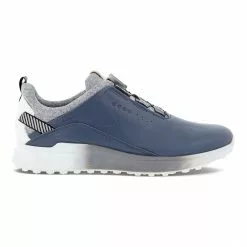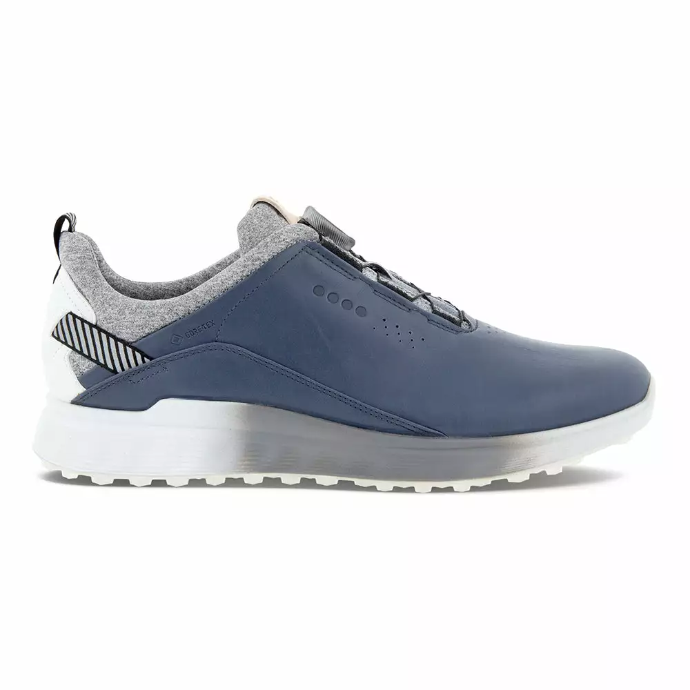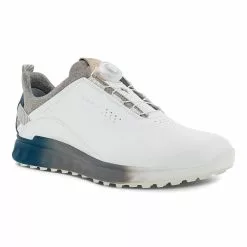 Ecco Golf S-Three Boa GoreTex mens golf shoes in blue is blending on-course performance with off-course style, the waterproof ECCO M GOLF S-THREE delivers premium comfort from the tee box to the clubhouse and beyond. The latest ECCO ZONAL FLUIDFORM™ innovation creates three distinct zones of rigidity in the midsole, ensuring the right balance of cushioning and stability. Comes in some great colours and offers a lightweight, breathable golf shoe designed to feel, fit and keep your feet dry. Boa laced construction with this shoe ensures perfect support and te3nsion around your feet from 1st to 18th hole. This men’s hybrid golf shoe is enhanced with an E-DTS® outsole and GORE-TEX Technology for excellent traction and wet weather protection.