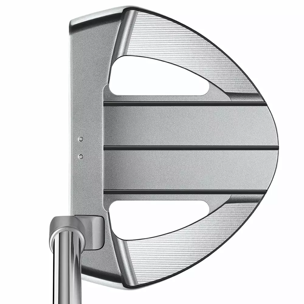 Evnroll Putters first came to the golfing world’s attention in 2016 with a range of stunning 100% milled putters featuring designer Guerin Rife’s ground-breaking, patented “Sweet Face” Technology. The innovative and unique groove technology is engineered to deliver uniform performance across the entire hitting area of the putter face for unprecedented accuracy and zero dispersion. Since then the brand has won multiple-awards internationally for its game changing technology including being the first company to win MyGolfSpy’s ‘Most Wanted blade and mallet’ back-to-back. Even Roll Distance – Because the channels get narrower away from the center, the spacing gets wider. This increase in contact surface means more energy transfer and replaces the energy lost when a ball is hit away from the sweet spot. So center and off-center hits travel the same distance.