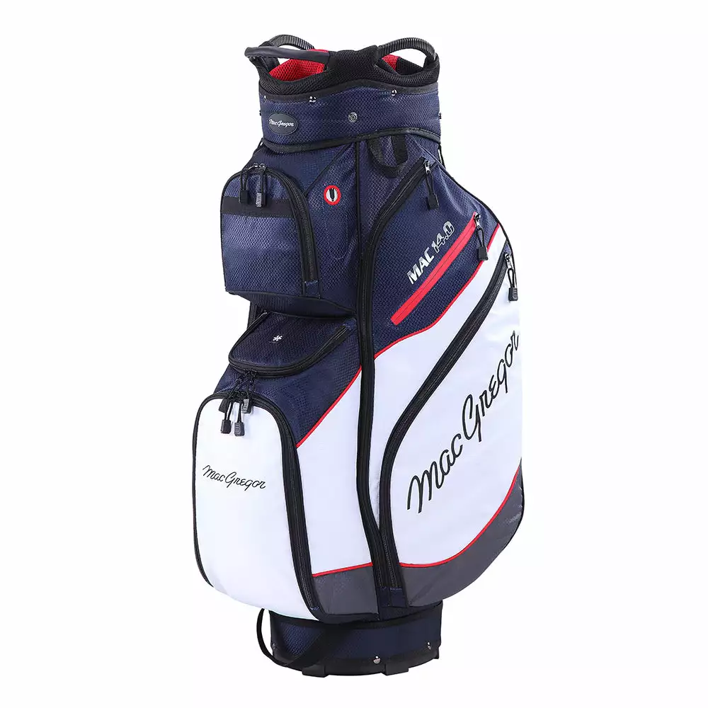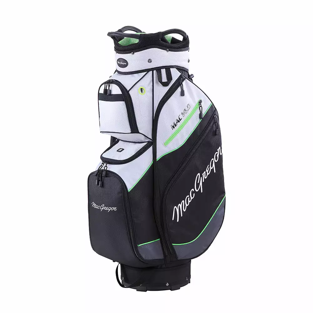 The Mac 14 Way 10″ Golf Cart Bag is a fully functional, yet lightweight 14-way divider top cart bag with several forward-facing pockets and is packed full of features which allow easy access to all your accessories and valuables while sitting on a cart.