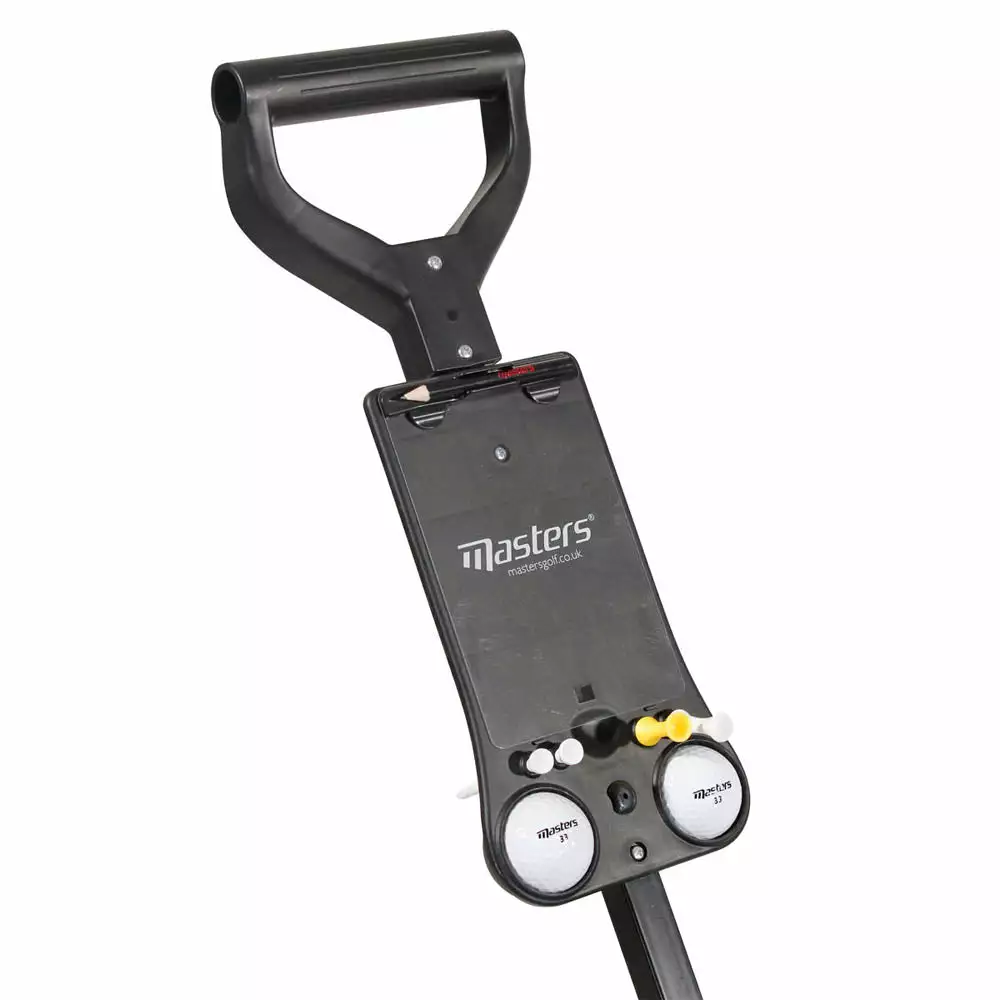 All the essentials are to hand golf with a clip holder for scorecards and various holes for tees, balls and pencils.