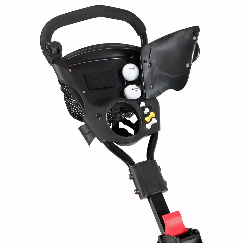Features a drinks holder to store your water bottle for quick access when out on the course as well as space for scorecard and other accessories. Furthermore, the adjustable height makes it easy to store in garages or car boots when not in use.