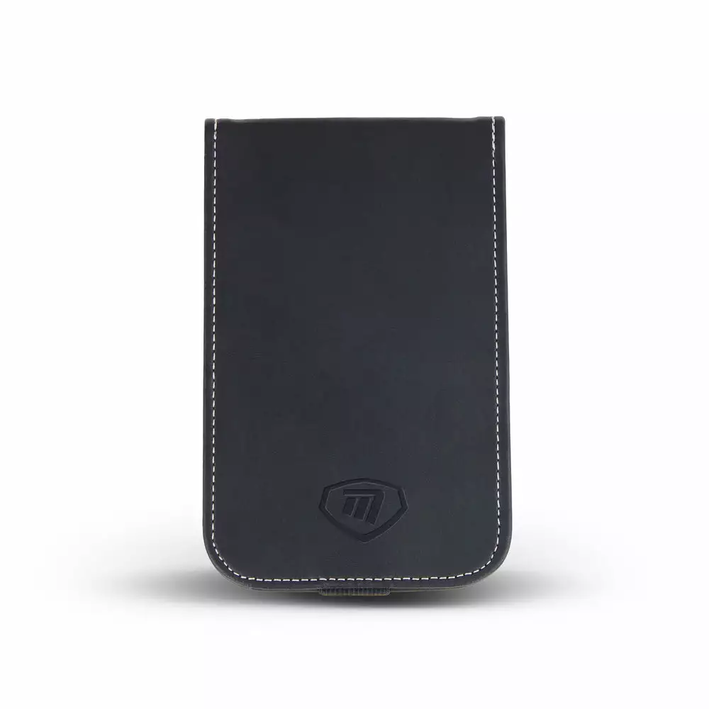 A leatherette protective case for your score card, keeping it dry and providing a firm writing surface.