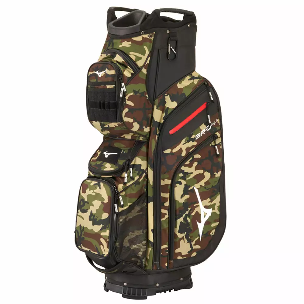 Leave nothing behind Mizuno’s maximum storage cart / trolley bag – with a staggering 20 pockets and compartments. An all-new “mission control” organizer panel makes it easy to store anything you need for quick access – from range finders to scorecards and yardage books to divot tools, all in one centralized location, with an extra-large cooler pocket.