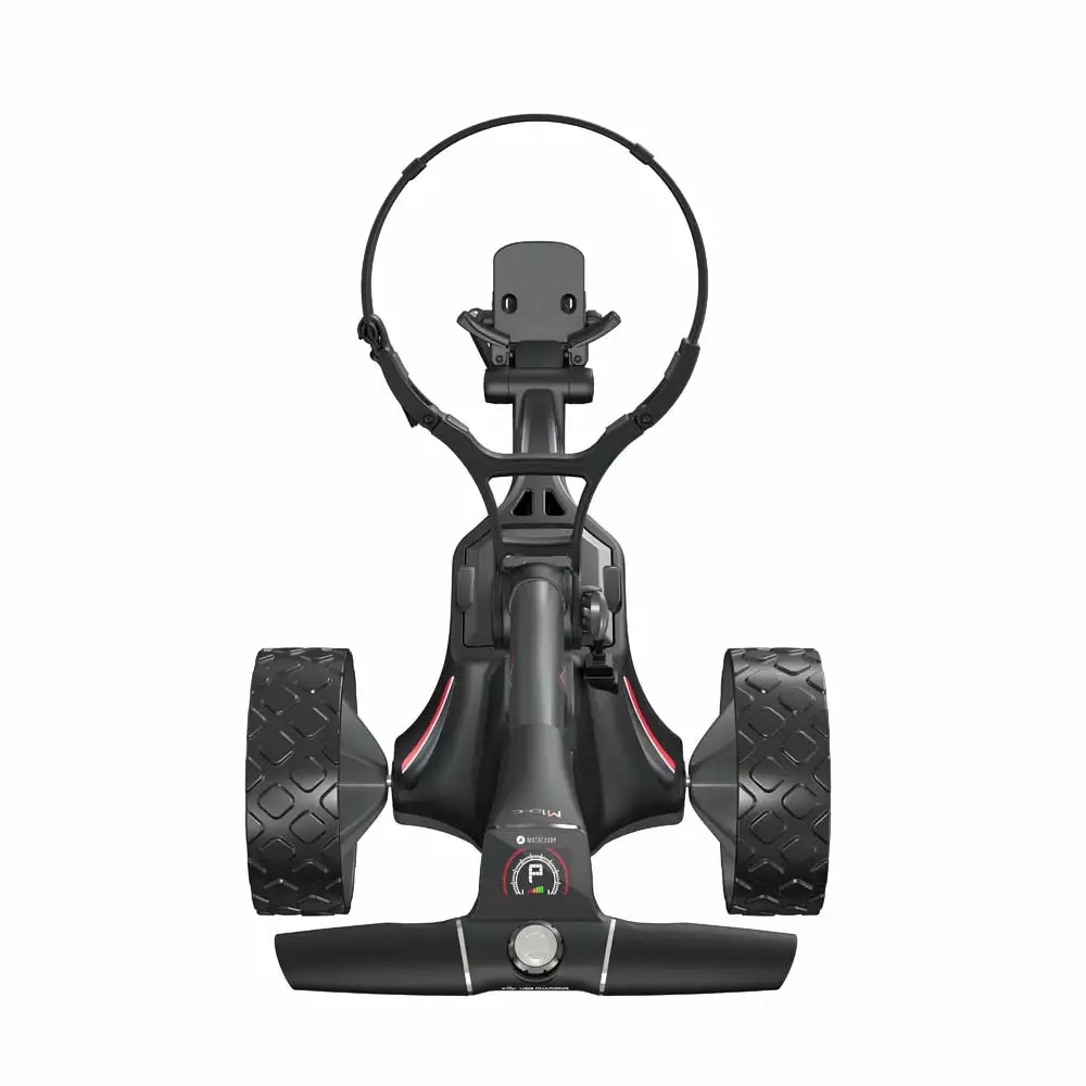 The compact M1 DHC, takes the impressive features offered by the easy-to-use M1 and adds Automatic Downhill Control, All-terrain DHC wheels, and an Electronic parking brake. The new 2022 M1 DHC Electric Trolley features a redesigned anti-glare LCD widescreen display, offering impressive visibility in all light conditions. The upgraded screen layout provides improved accessibility making the interface easier to navigate, helping you stay focused on the golf. This is a compact, premium and user friendly golf trolley from Motocaddy.