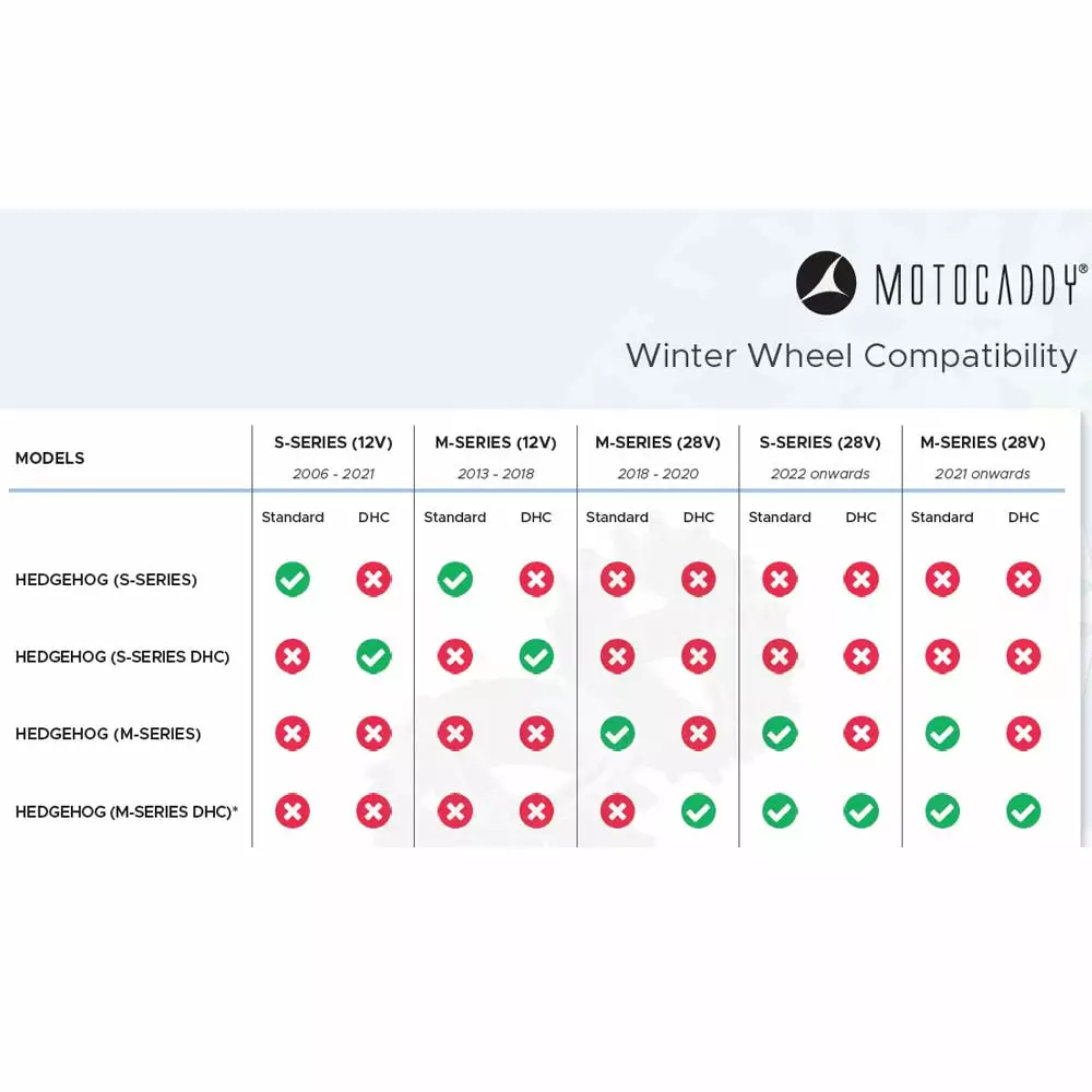 Motcaddy hedgehog winter wheels is a pair of wheels to enable you to carry on using your trolley for winter golf. Developed in conjunction with the Hedgehog Golf Company these Winter Wheels are durable and hard wearing, reducing turf drag when used in wet conditions. They are perfect for you and the course this winter.