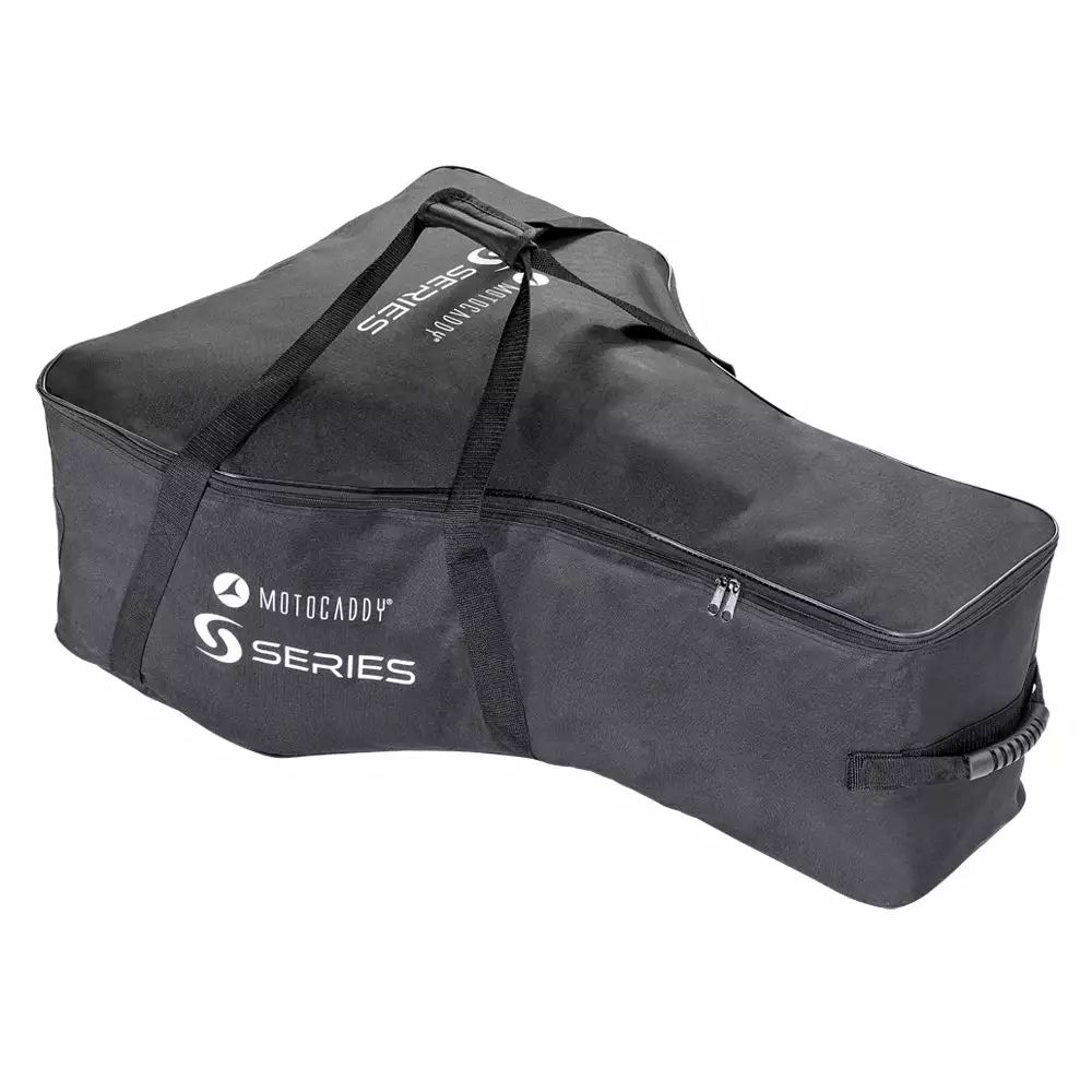 Motocaddy S Series travel cover is designed to make transportation to and from the course easy and stress free. Its strong design and grab handles make it user friendly and it fits all Motocaddy s-series trolleys.