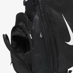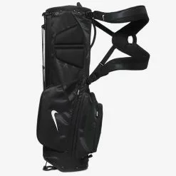 Enjoy the green with the Nike Sport Lite Golf Bag. The anatomically correct Nike Equaflex dual strap offers a balanced feel, so you can play all 18 holes in comfort. If the weather turns wet, a water-resistant, fleece-lined pocket keeps your valuables secure and dry and a rain hood deflects the elements