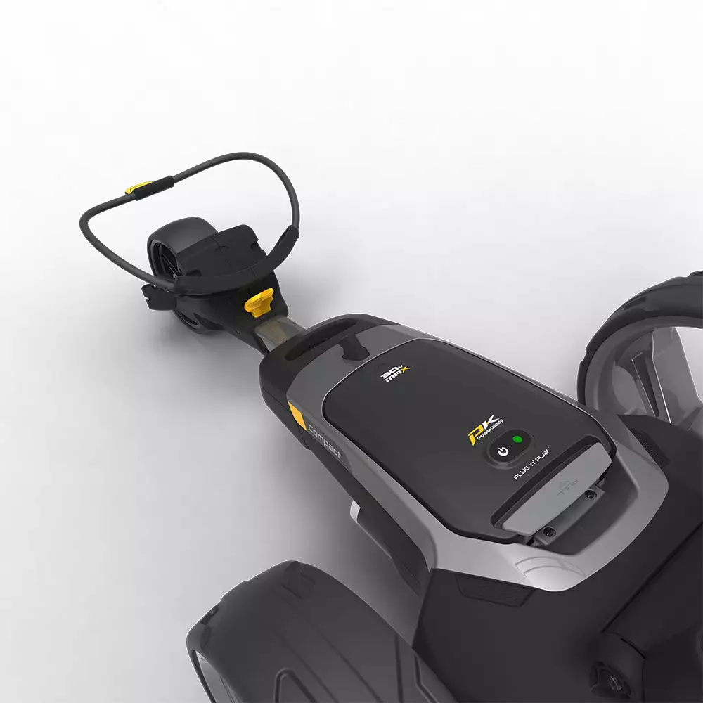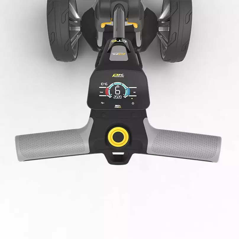 The all–New 2022 ultra–compact PowaKaddy CT6 folds in 2 simple steps. It features a new 2.8” mid–size full colour widescreen display and a USB charging port. The soft touch handle height adjusts to fit you perfectly. An integrated carry handle makes it easy to transport.Simple–2–FoldTMsystem in the CT series folds 20% smaller than the previous PowaKaddy Compact models and 35% smaller than its nearest competitor on the market.