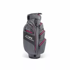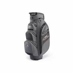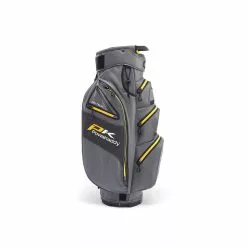 The new PowaKaddy Dri Tech cart bag is a 100% fully waterproof bag using a hydrostatic rated fabric of over 10,000mm –that’s four times the performance of most waterproof bags on the market. Using a cutting–edge super–lightweight Nylon fabric, as well as a superior heat welded seam–sealing method and a special coating, the Dri Tech bag offers unrivalled waterproof performance.The Dri Tech’s easy lift divider top features a dedicated large integrated putter bay designed to accommodate larger putter grips whilst the 14–way divider system gives each club a place to prevent snagging whilst retrieving or replacing your club. The bag features 7 spacious pockets including 2 full length apparel pockets, velour lined valuables pocket, scorecard holder, matching waterproof rain hood, covered zip holders to ensure 100% waterproof protection and the PowaKaddy Key–Lock™ anti twist system to ensure your bag stays firmly onyour trolley.