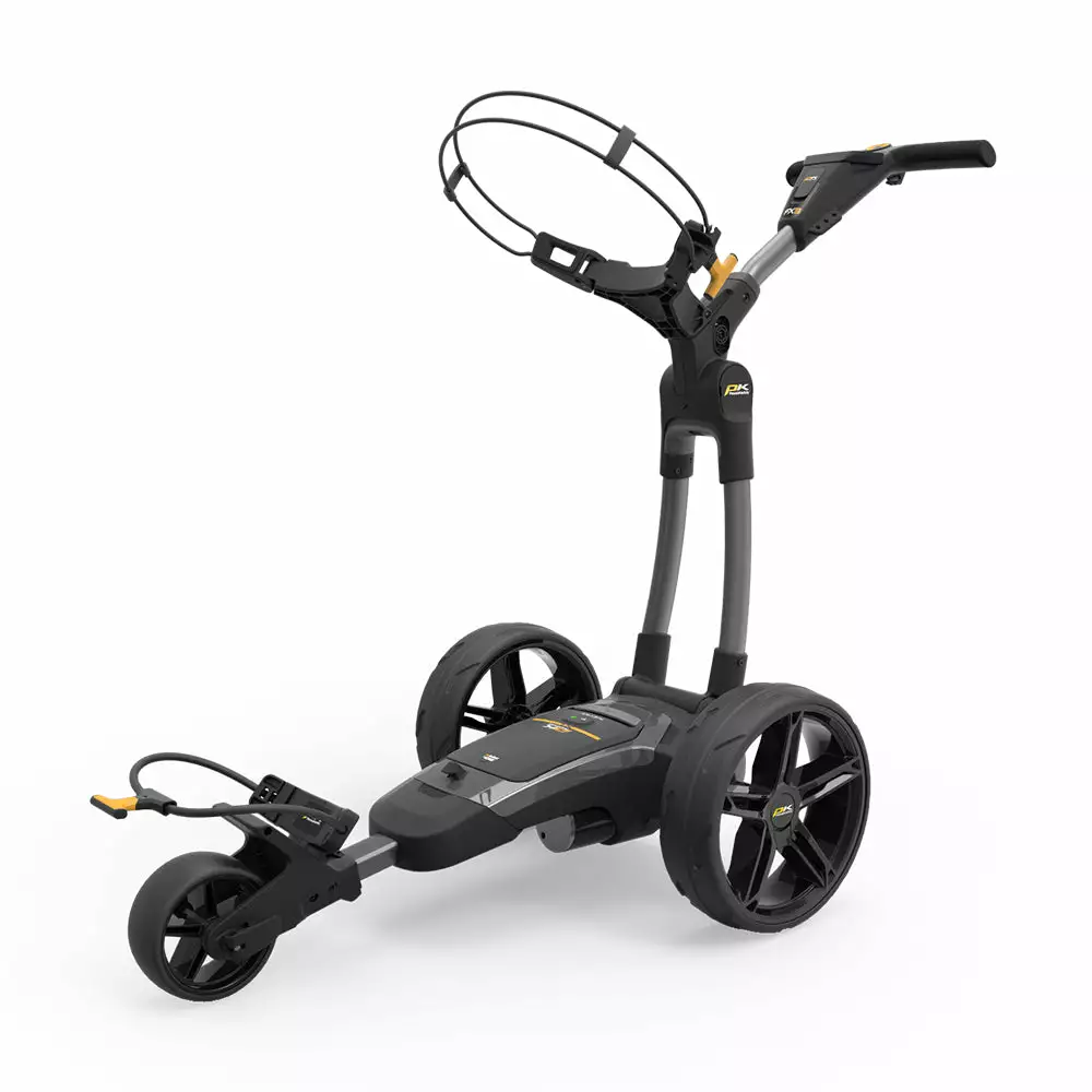 The market–leading Freeway series renamed as the FX collection –to signify the tenth reimagining of the world’s most popular trolley family. For simplicity without compromising on unbeatable performance and reliability, the all–new FX3 is the entry–level model in the Freeway series. Admire the new 2.3” full colour widescreen display with digital power gauge and battery fuel indicator. Note the powerful, quiet 30v 230w motor nestling in a low profile, styled PowaFrame® with the new unique Plug’n’Play™ 30volt Max battery and motor system. Simplest–ever 1–Click folding system in the FX Collection. The new 2023 FX3 folds20% smaller than the previous PowaKaddy Freeway model. Recognise that the stylish FX3 offers engineered simplicity at the highest level.