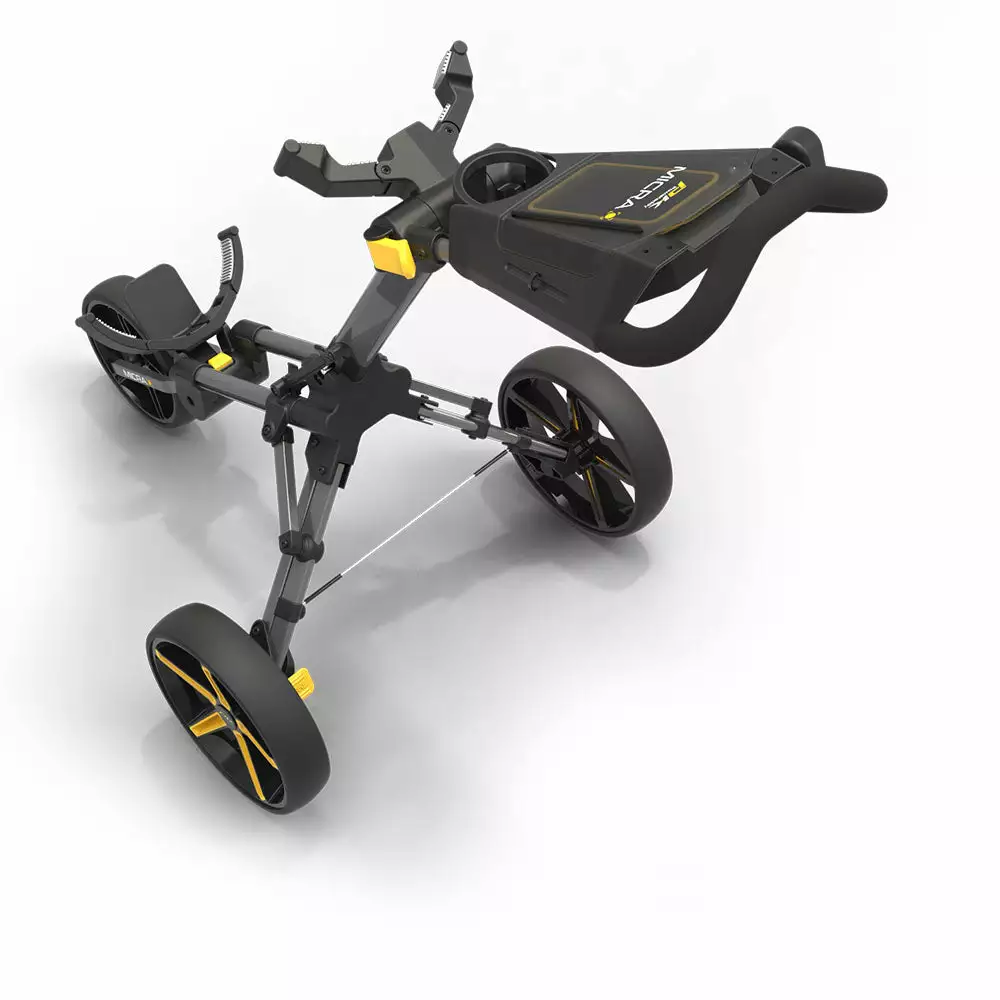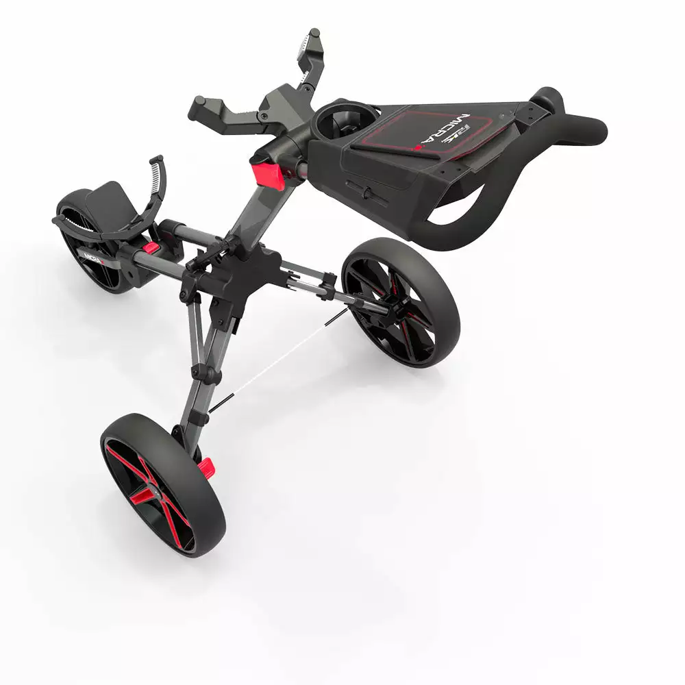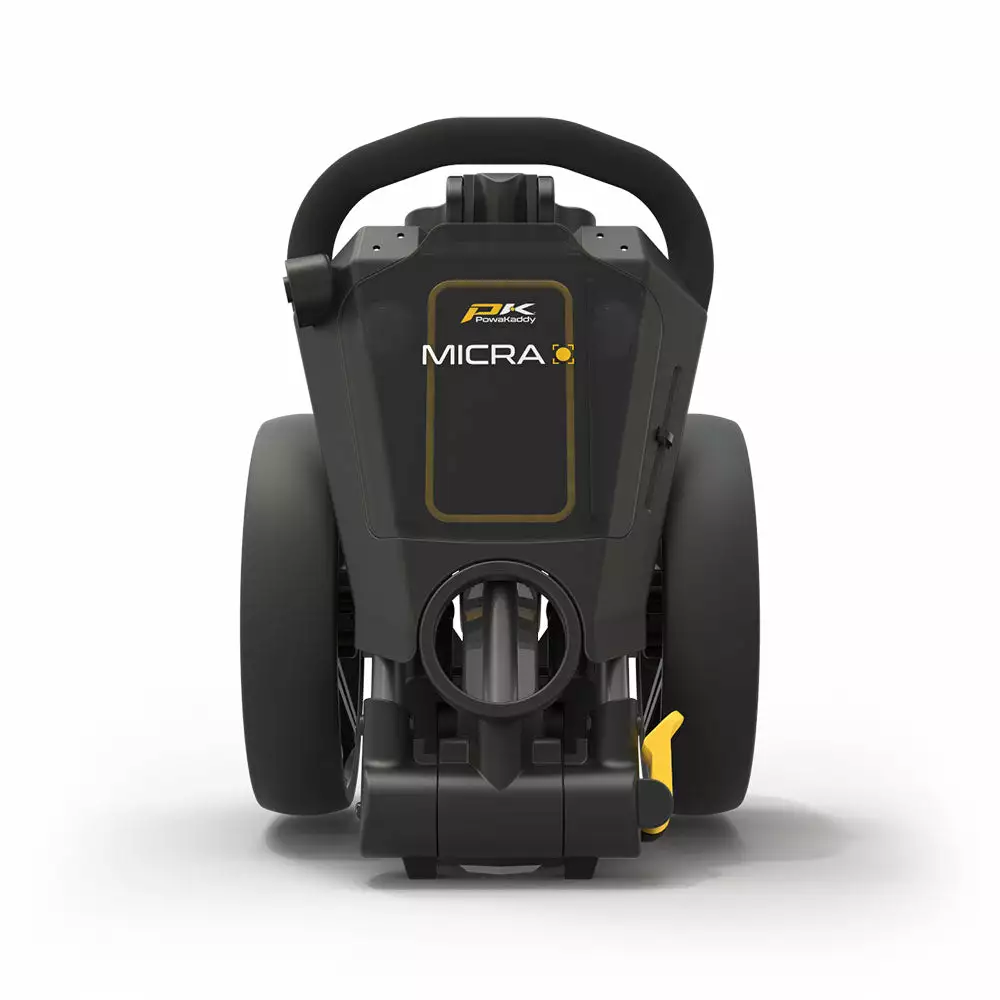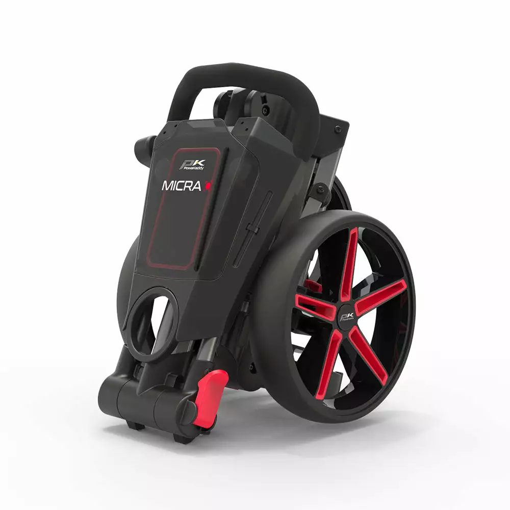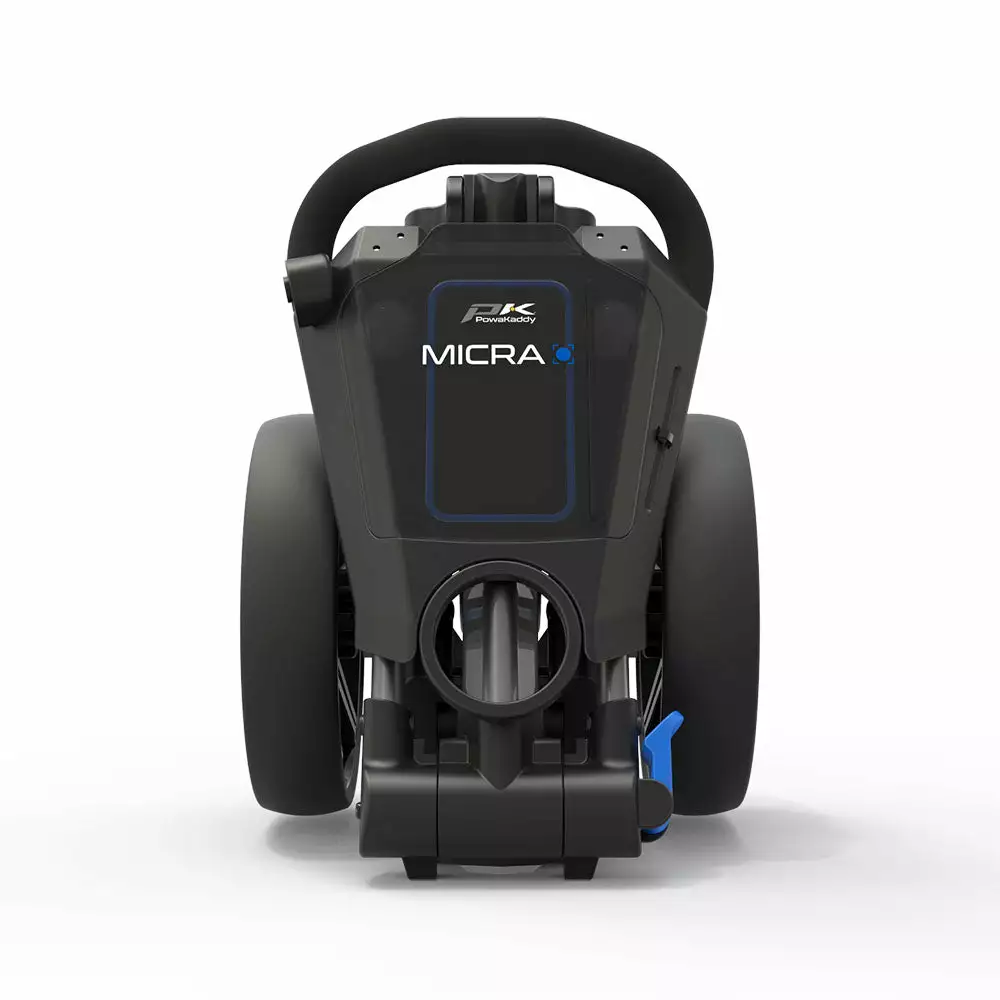 The new PowaKaddy Micra Cube is a stylish lightweight and compact push trolley with a simple folding and unfolding mechanism. The clever two–step folding system ensures the Micra folds down compactly to fit into the smallest of spaces. Perfect for when you need that extra room. The compact 3–wheel design and wide wheel base make pushing or pulling effortless whilst providing extra stability when going over uneven ground. An easily accessible foot operated parking brake ensures your trolley stays in place when you’re playing your shot. The new PowaKaddy Micra is packed with a host of features including a dedicated soft lined water–resistant mobile phone storage area and an ergonomic soft touch handle for handle height adjustment. The generous sized multi feature handle comes with a scorecard holder, pen/pencil holder and storage for your golf balls and tees.