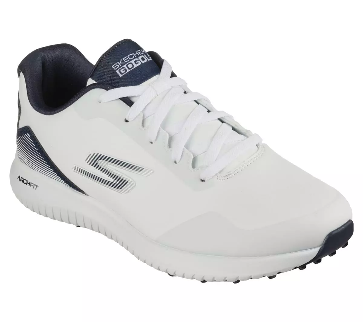 Play your best game in all-day supportive comfort wearing Skechers GO GOLF Max 2. This spikeless waterproof design features a lace-up synthetic and mesh upper with a removable supportive Arch Fit insole.