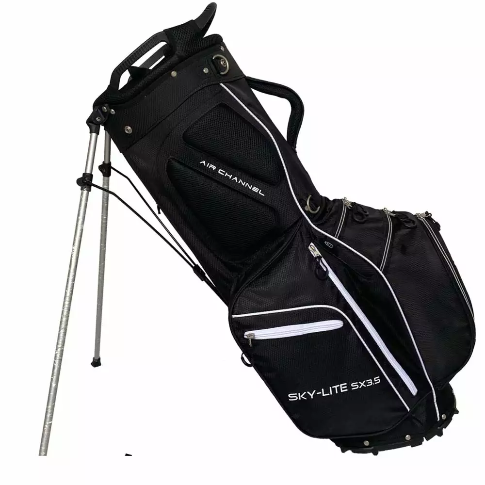 The Skymax Sky-Lite SX 3.5 Stand Bag is lightweight designed to make it easy for you to carry your golf gear around the golf course. Fitted with a strong flip out stand giving superb stability. The waterproof pocket allows you to keep your valuable protected from the elements. The air channel padded section offers extra support to your back when carrying. The 7 way top divider is designed to help protect your club heads and shafts.